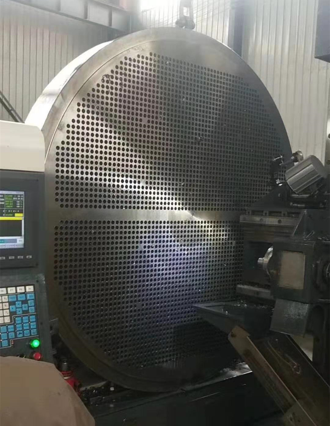 2023用于三、四類(lèi)壓力容器的管板需要比較高的精度,傳統(tǒng)的孔加工方法是鉗工劃線(xiàn),搖臂鉆打孔。隨著化工容器的大型化,管板的直徑也不斷增加,厚度也逐漸加厚,管板加工也引入數(shù)控技術(shù),普遍使用數(shù)控鉆床引孔配